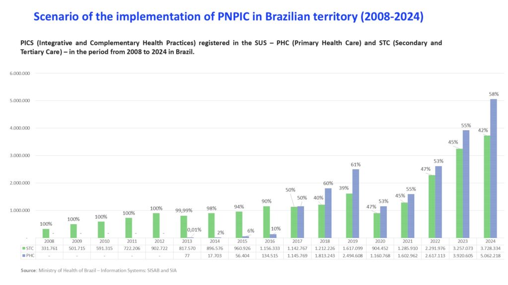 The expansion of PICS in Brazil is guided by strategies implemented across different levels of the health system. A central component is the expansion of services in primary health care units, ensuring access to practices close to users’ communities as a routine part of care.